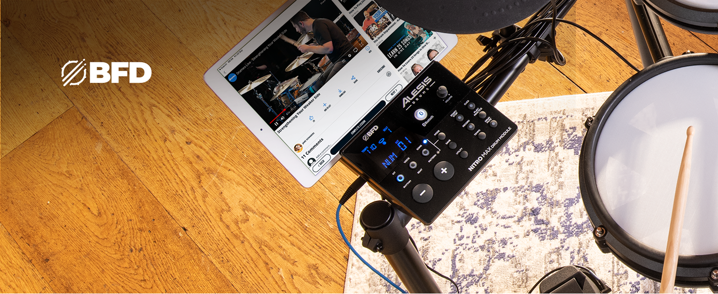 - Create and Customize Your Own Kits – Upgraded Drum Module with 32 ready-to-play BFD kits, 16 user-made kits & 440+ drum, cymbal & percussion sounds and multi-velocity samples for a real acoustic drum sound