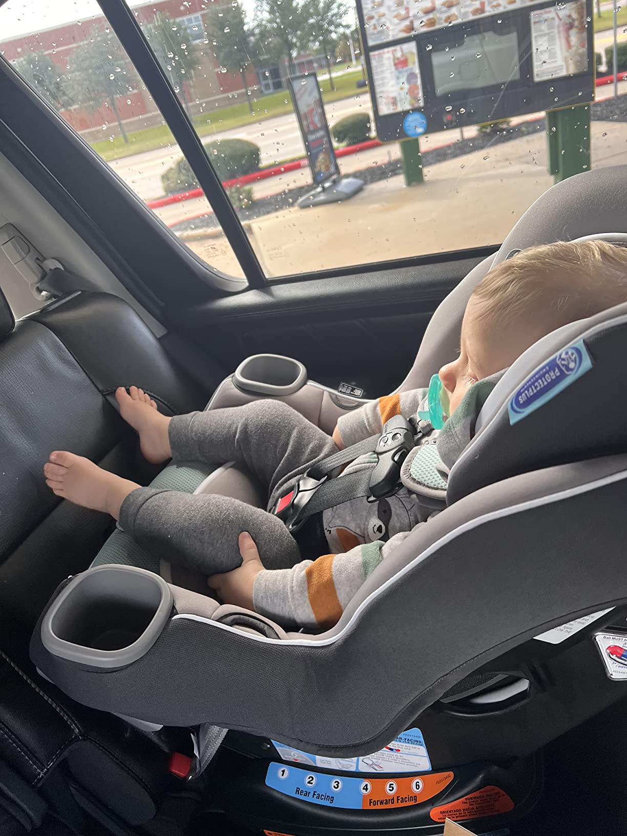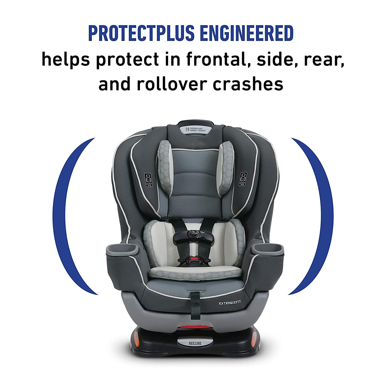 • Safely ride rear-facing longer! it can Convertible Car Seat grows with your child from rear-facing harness (4-50 lbs) to forward-facing harness (22-65 lbs). It features a 4-position extension panel that provides up to 5” of extra rear-facing legroom, allowing your child to safely ride rear-facing longer. Children are safer riding rear-facing and should ride rear-facing as long as possible, until they reach the maximum rear-facing height or weight rating for their car seat. With Extend2Fit, the adjustable extension panel and 50 lbs rear-facing weight limit allow the seat to grow with your child in rear-facing mode, providing extended rear-facing use. The seat features the No-Rethread Simply Safe Adjust Harness System, which allows you to adjust the height of the headrest and harness in one motion, and InRight LATCH for a one-second LATCH attachment. Harnessing is made easier with fuss-free harness storage pockets that conveniently hold the harness out of the way while you get baby in and out of the car seat. This car seat help protect in frontal, side, rear, and rollover crashes.