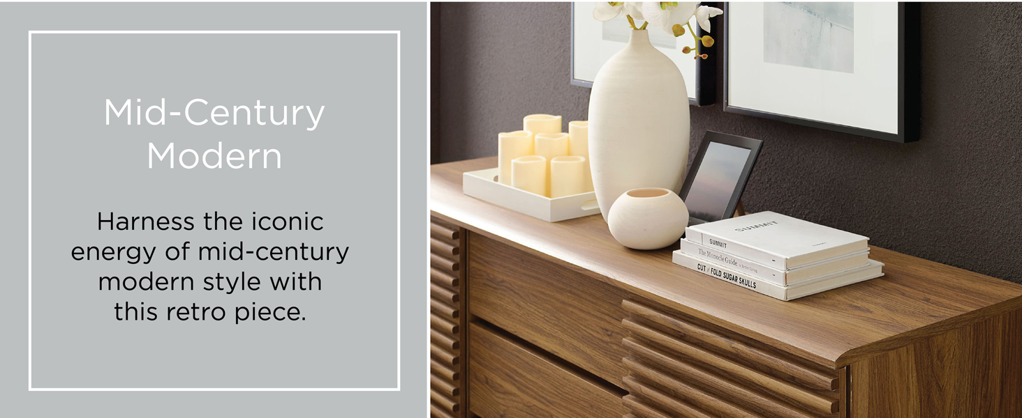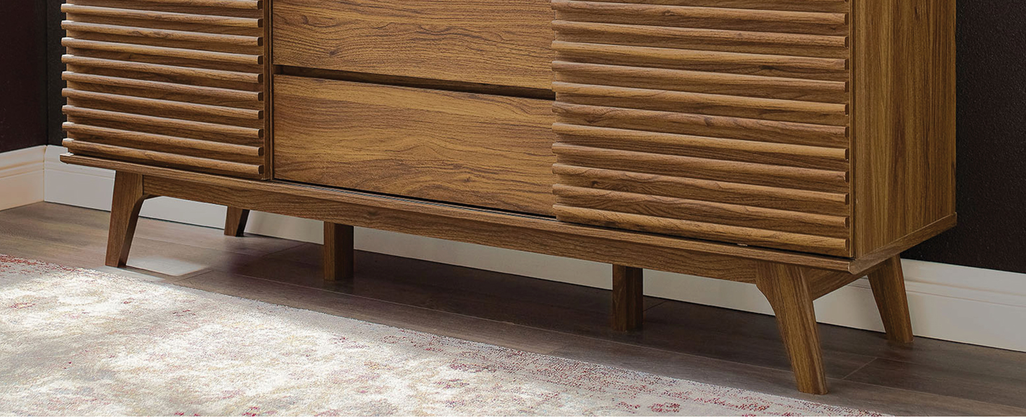 dining room finery. Boasting a mid-century modern style this accent table features a solid construction with a pleasing look and practical functionality. Perfect as a sideboard, credenza, storing and serving buffet table,