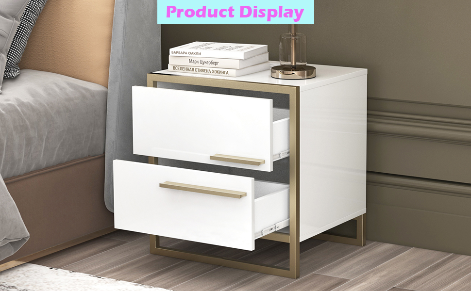 • 【Furniture】Nightstand with 2 Storage Drawers, Bedside Table with Gold Legs, End Table-Black
