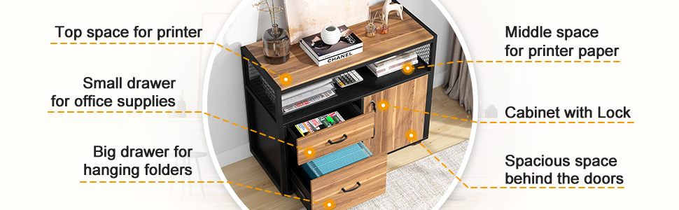 • ✔32 inches mobile lateral file cabinet features with double drawers,2 -tier open storage shelf,and cabinet doors and locks.