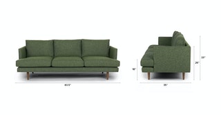 Kiln dried pine wood frame. Solid wood legs. High resiliency foam (2.27 PCF) with duck down feathers and fiber. Fabric - 100% Polyester, Martindale test - 100,000 rubs